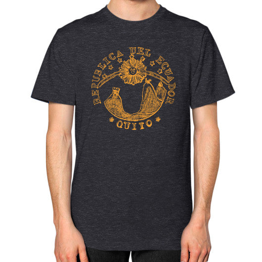 This shirt reproduces the design of the gold doubloon that figures prominently in Chapter 99 of Moby-Dick. The coin described in the book is an actual coin minted by the Republic of Ecuador in the early 1840s. It looked exactly like this except that it was a coin instead of a T-shirt.